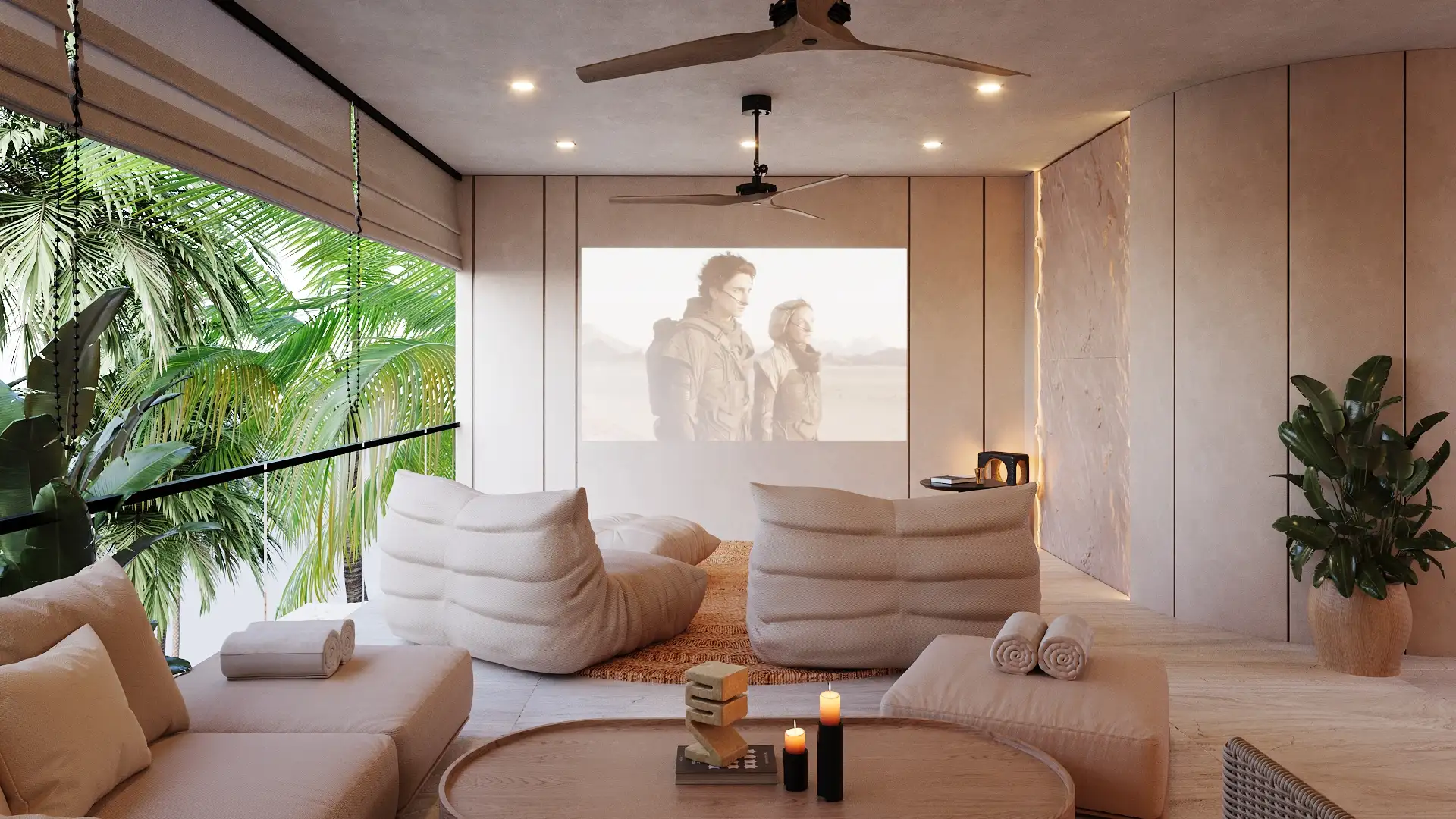 The highlight of the home is the third-floor lounge area, designed as a private cinema and entertainment space. From here, residents enjoy panoramic views of the Indian Ocean, lush green rice fields, and even the distant silhouette of Bali’s volcanoes. The villa is set within the Pink Zone, meaning commercial use is fully permitted—ideal for rental income or hospitality-driven concepts. Whether used as a personal residence, a holiday retreat, or a luxury rental, the property offers flexibility and future-proof value. The neighborhood itself is rapidly evolving, with new dining options, boutique cafés, and lifestyle conveniences emerging each season, further boosting the long-term appreciation of properties in this area.