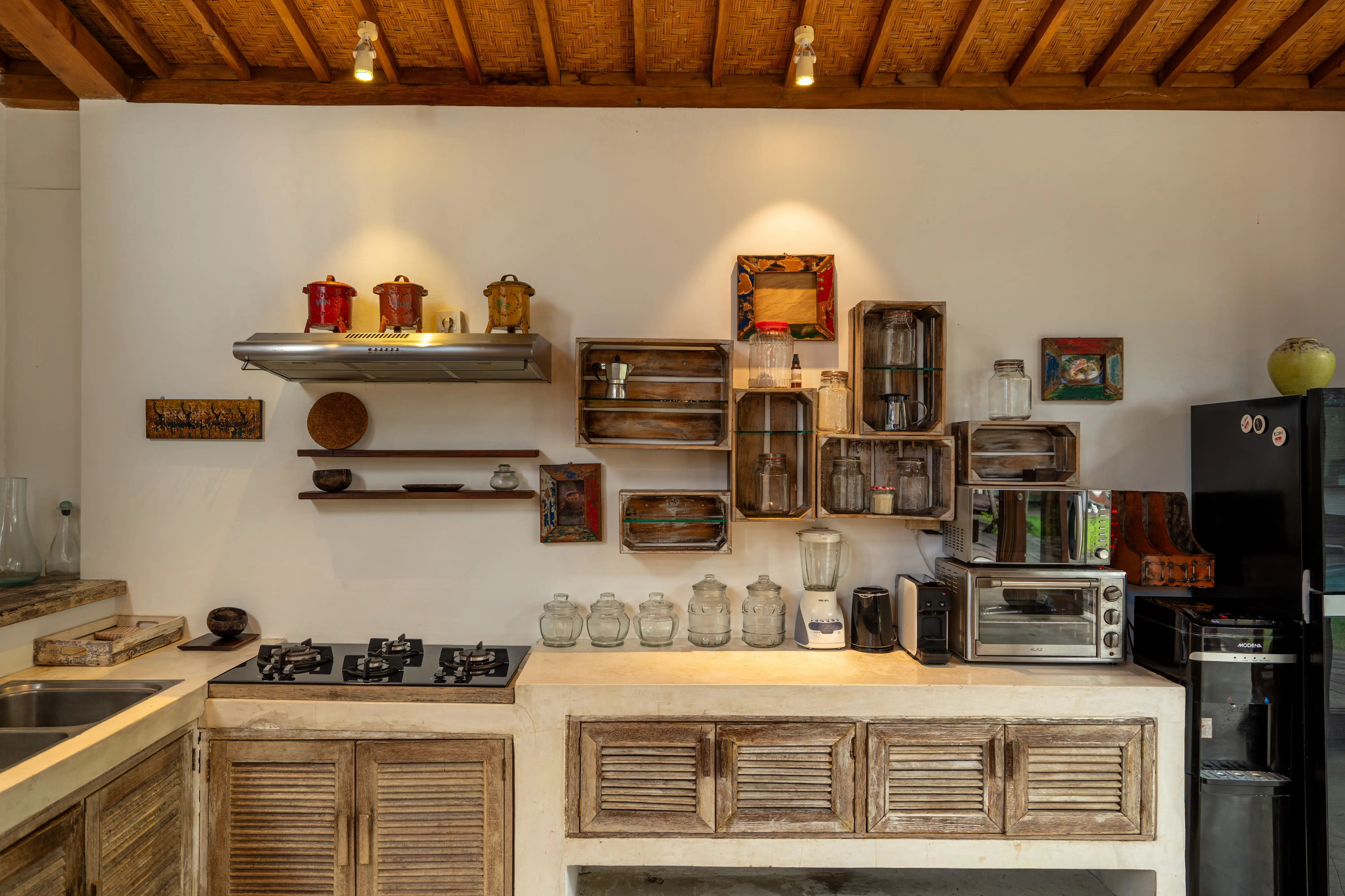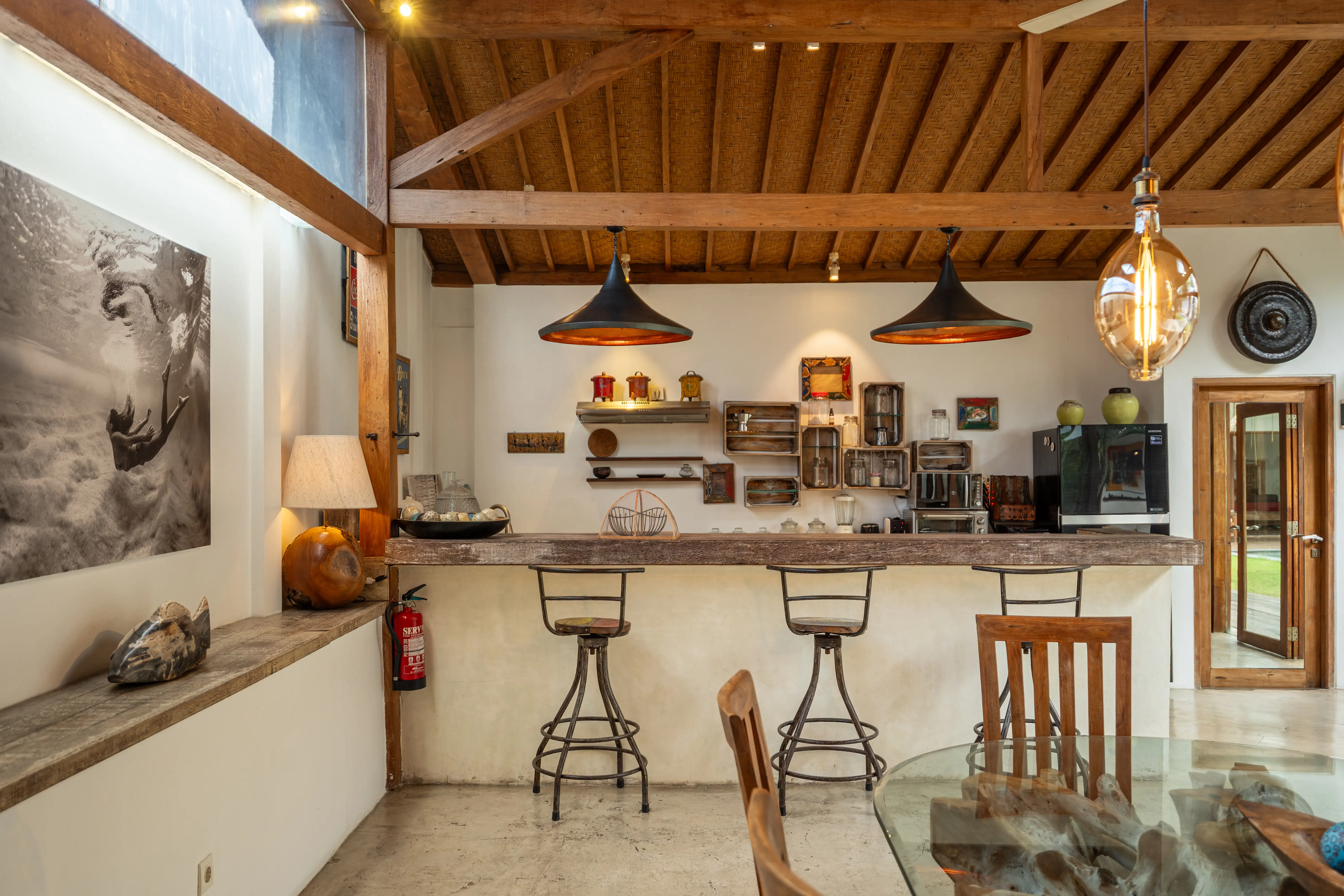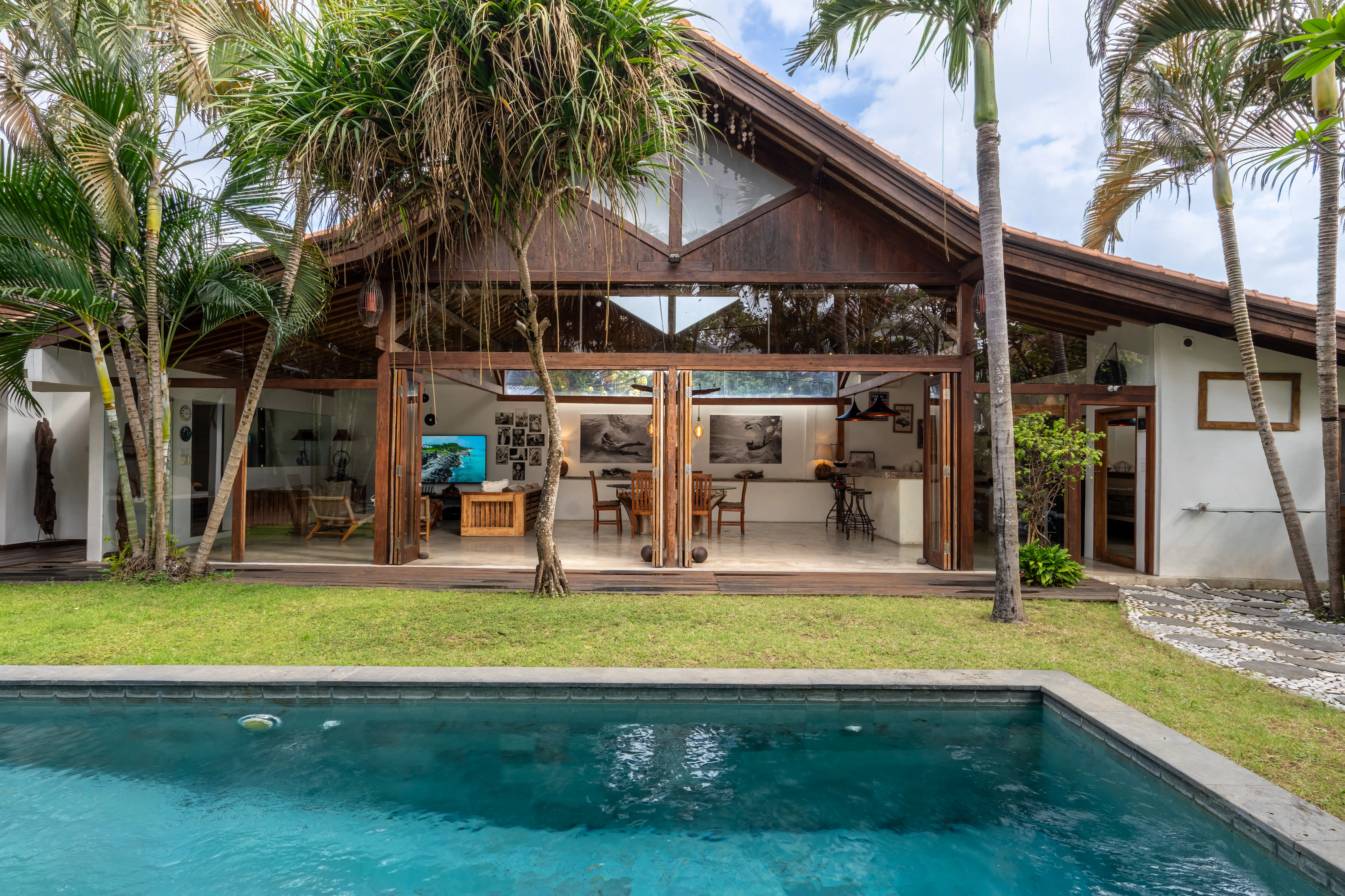 Nestled in the heart of Kerobokan, this beautifully designed 3-bedroom villa offers the perfect combination of tropical charm and modern functionality that has been fully renovated in 2016. Set on a generous 400 sqm plot, the property features a spacious open-plan living area with high wooden ceilings, allowing for abundant natural light and seamless indoor-outdoor flow. The interiors showcase a blend of rustic elements with clean white walls and exposed timber beams, creating a warm and relaxed atmosphere. A fully equipped kitchen with handcrafted shelving and a breakfast bar invites shared meals and social gatherings.