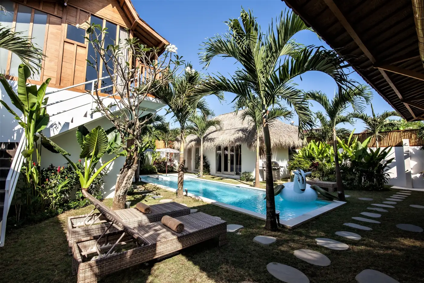 Step outside to a large swimming pool surrounded by a lush tropical garden—perfect for enjoying Bali’s sunshine and the stunning sunset ambiance that this location naturally provides. The villa is situated in a quiet, construction-free zone, ensuring long-term tranquility while still being in the heart of Seminyak. Perfectly positioned, the villa is walking distance to Seminyak and Petitenget Beach, as well as countless iconic destinations. Indulge in world-class dining, trendy cafés, high-end boutiques, gyms, spas, and nightlife—all just steps away. Famous venues such as Potato Head Beach Club, Ku De Ta, and numerous vibrant bars are only a short walk from your doorstep.