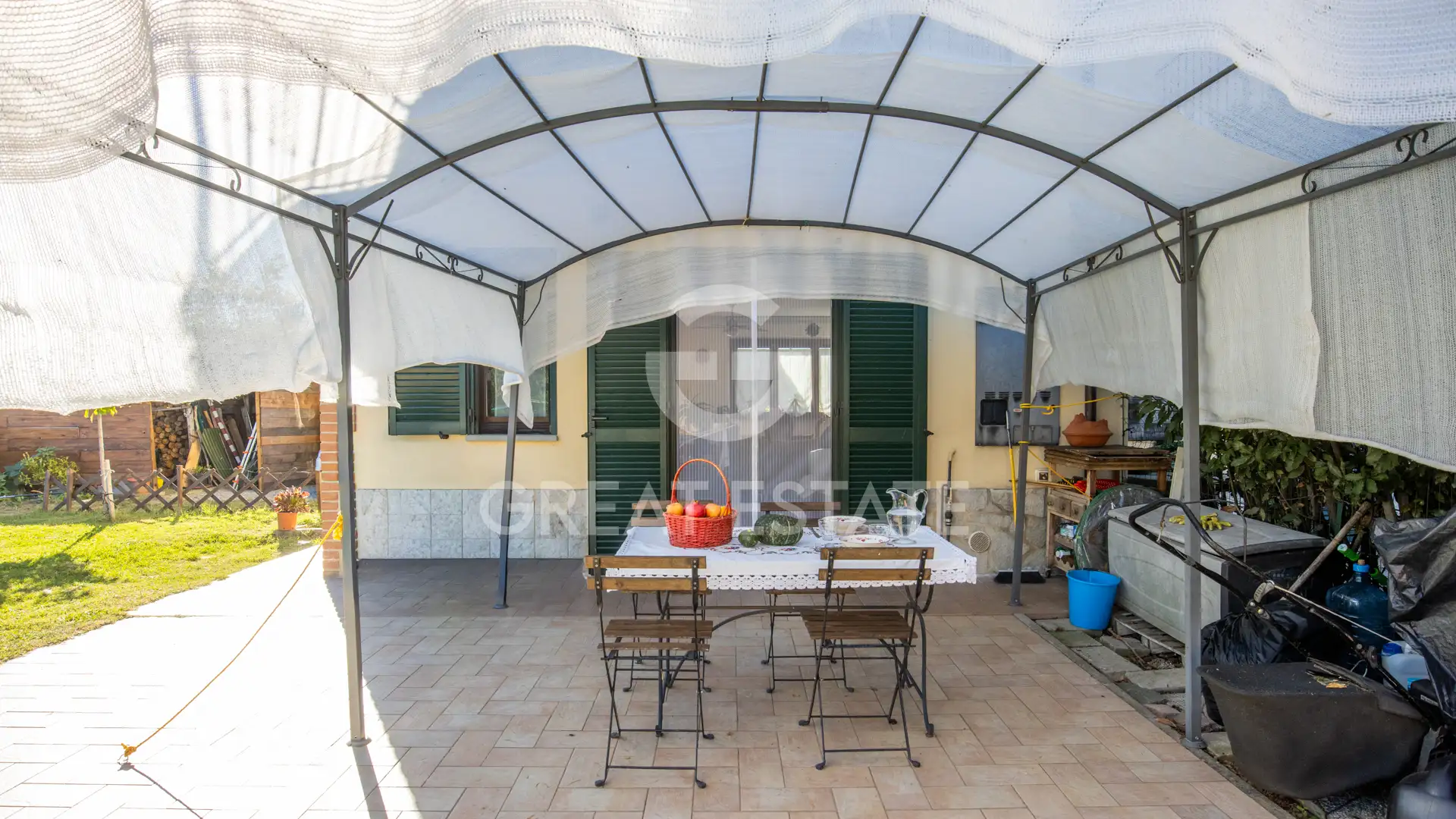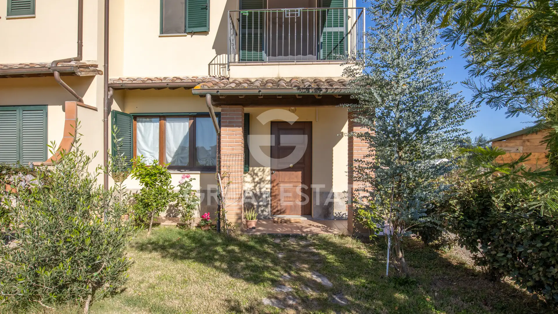 This independent villa on three sides is located in the Municipality of Tuoro sul Trasimeno, in a flat area close to the lake, ideal for those seeking a peaceful setting immersed in nature yet near essential services. The property, renovated in 2007, covers a commercial area of approximately 92 square meters over two levels, with private land of 367 square meters featuring a well-maintained garden, offering a livable and private outdoor space.
