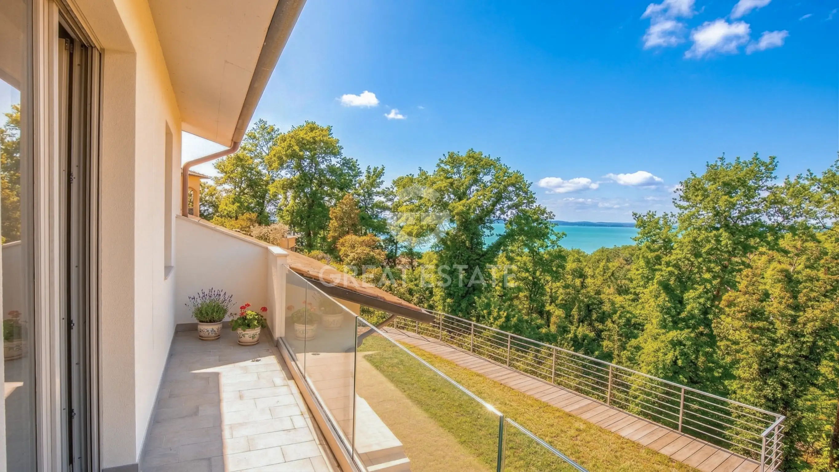 Ascending to the first floor, a bright mezzanine becomes the creative heart of the home, perfect as a study, reading corner, or intimate retreat. The sleeping area comprises a double bedroom, a bathroom, and the master suite complete with walk-in closet and panoramic terrace, from which you can admire breathtaking views over Lake Trasimeno. The floor is further enhanced by a 20 sqm porch, elegant and functional, which can be enclosed to create a sunroom, ideal for enjoying outdoor relaxation in every season.