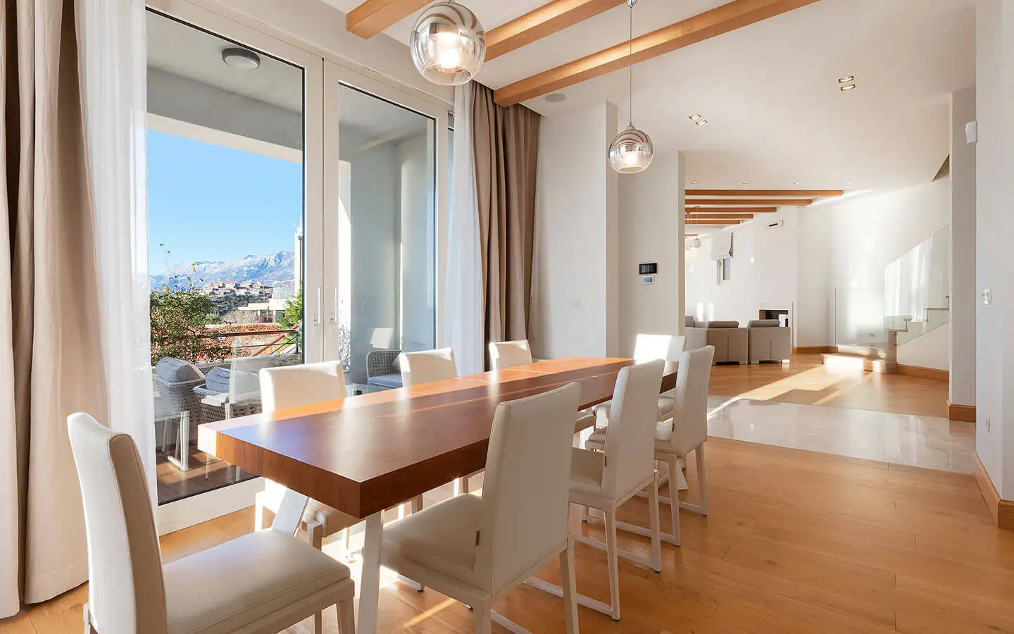* Open-plan living area with a modern kitchen, dining room, and large terrace (35 m2)